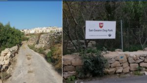 Mígnem odaértün a san gwann-i DOG PARKnak nevezett létesítményhez. Nálam jobban csak maga Szőke döbbent meg, s még fotózni is elfelejtett. Szegény, milyen csalódott volt, hogy a hangzatos név mit is takar valójában. Egy parányi árnyas terület, ami a legnagyobb jóindulattal se nevezhető “zöldellő kutyafuttató”-nak.